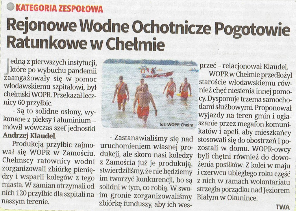 Każde działanie ma sens, jeżeli wykonywane jest z pasją. A dodatkowo serce rośnie, gdy ktoś to zauważa i docenia. W ubiegłym tygodniu na łamach SUPER TYGODNIA WŁODAWSKIEGO Nr 5(1000) 1-7 lutego 2021 ogłoszony został plebiscyt na Dobroczyńcę roku 2020. Ku naszemu zaskoczeniu wśród nominowanych znalazło się również Chełmskie WOPR.